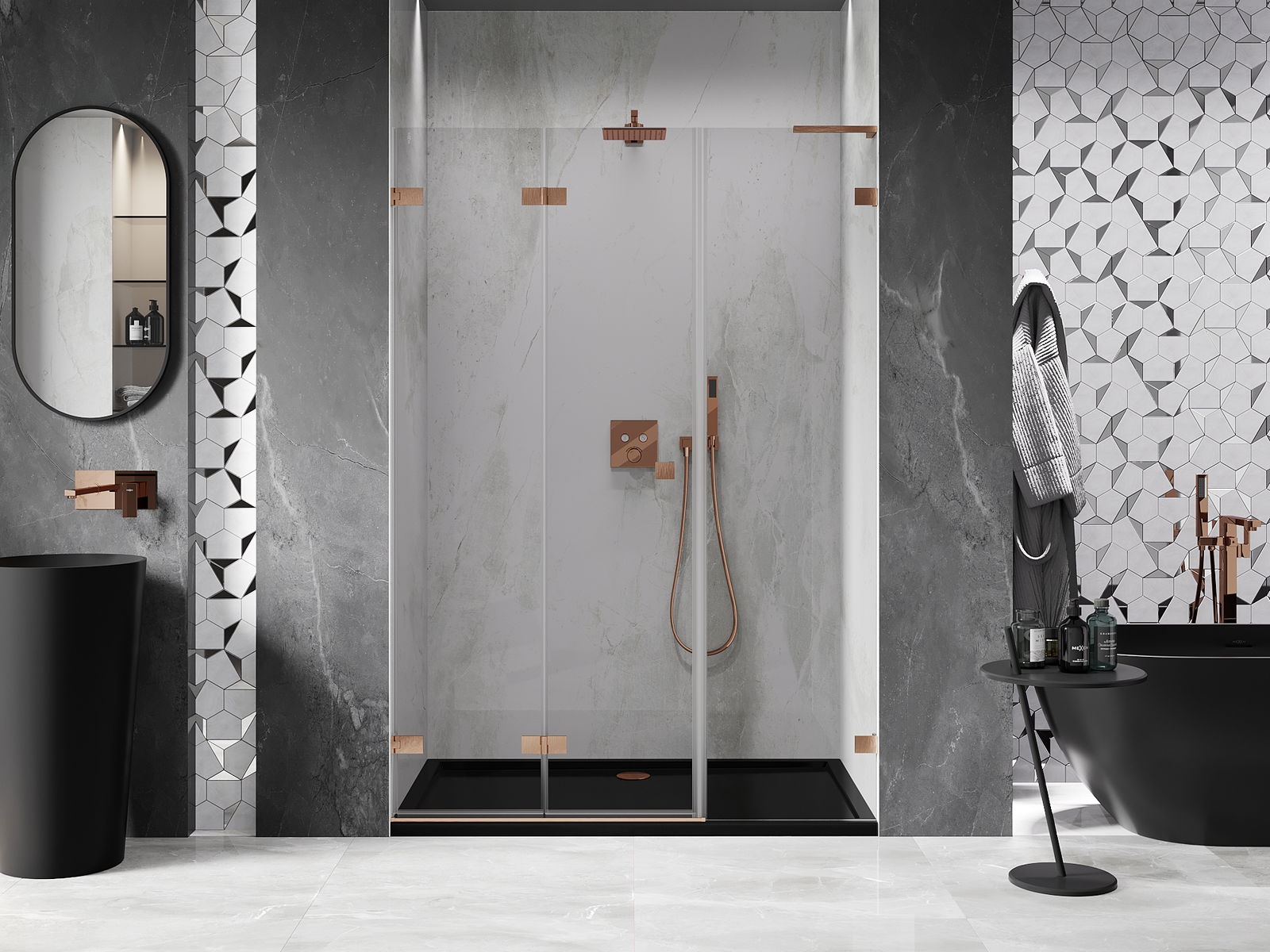 Mexen Lunar-F L porta de chuveiro dobrável esquerda 135 cm, transparente, cobre escovado - 836SL-135-050-65-00-L