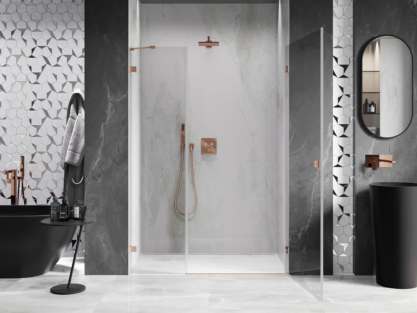 Mexen Lunar-B porta de duche com dobradiça à direita 140 cm, transparente, cobre escovado - 832S-140-050-65-00-P