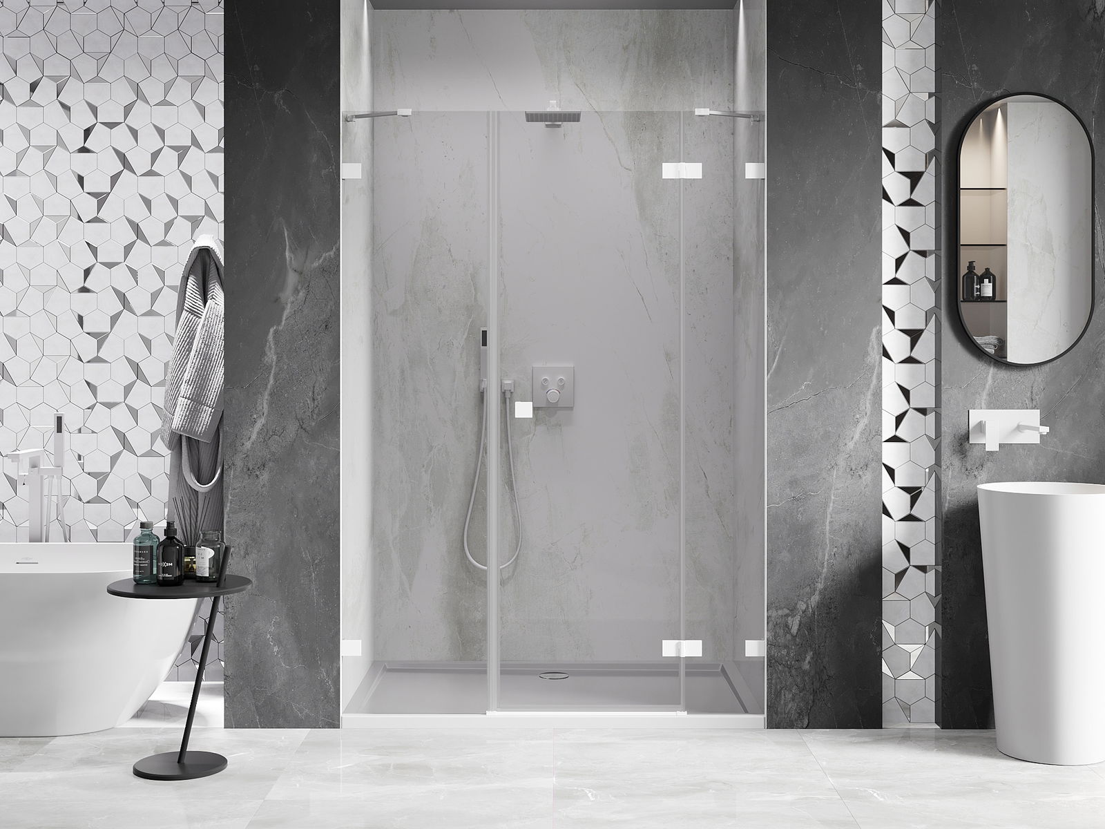 Mexen Lunar porta de chuveiro de abrir à direita 140 cm, transparente, branco - 834S-140-050-20-00-P