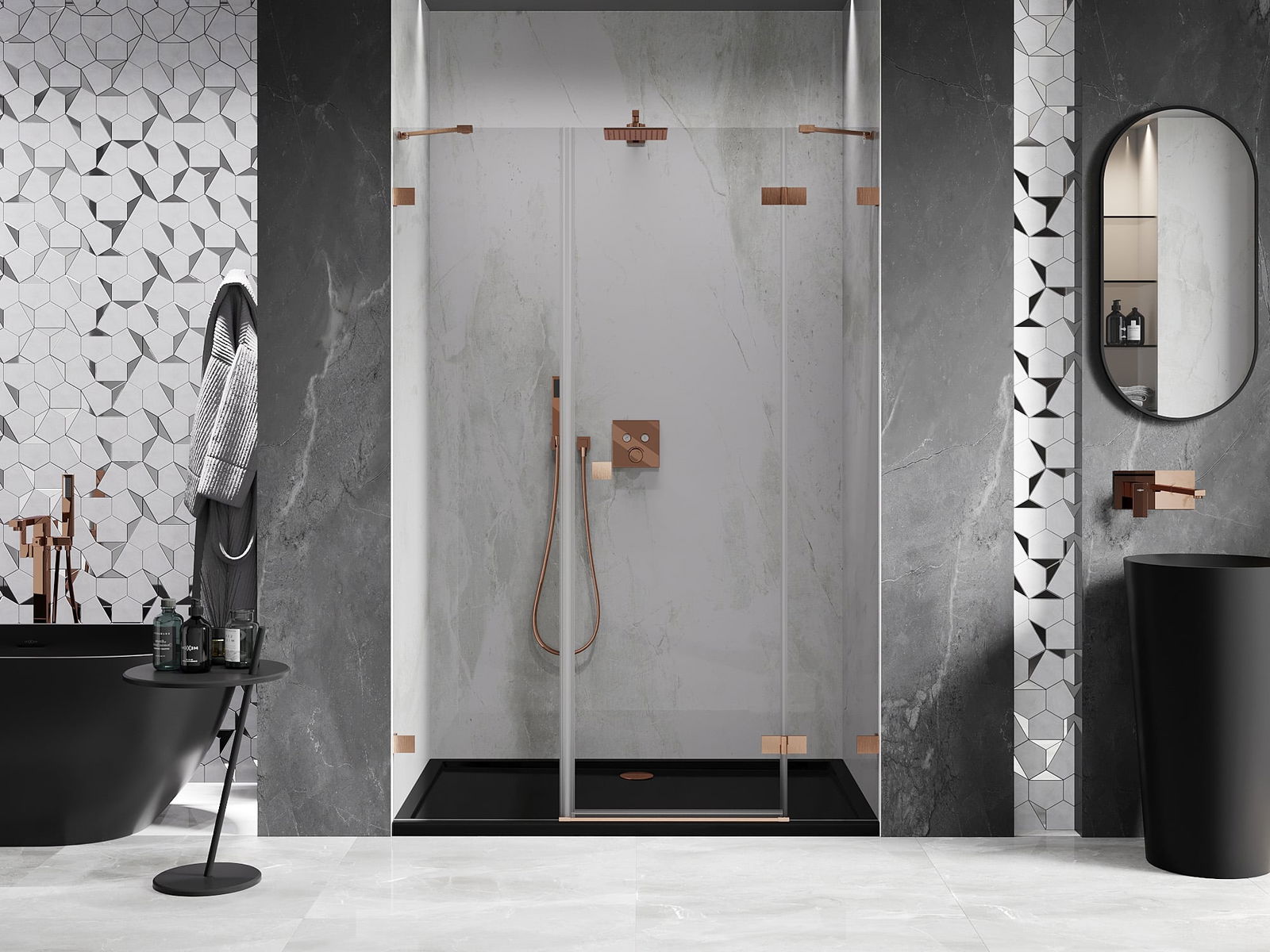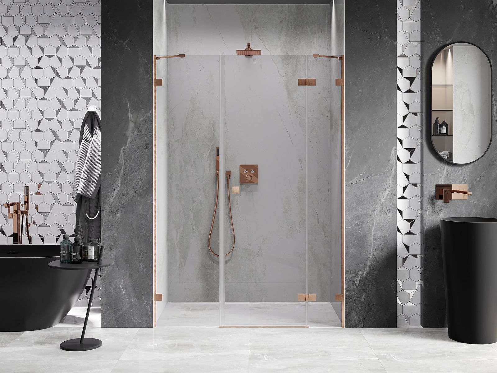 Mexen Lunar porta de chuveiro de abertura direita 130 cm, transparente, cobre escovado - 834S-130-050-65-00-P