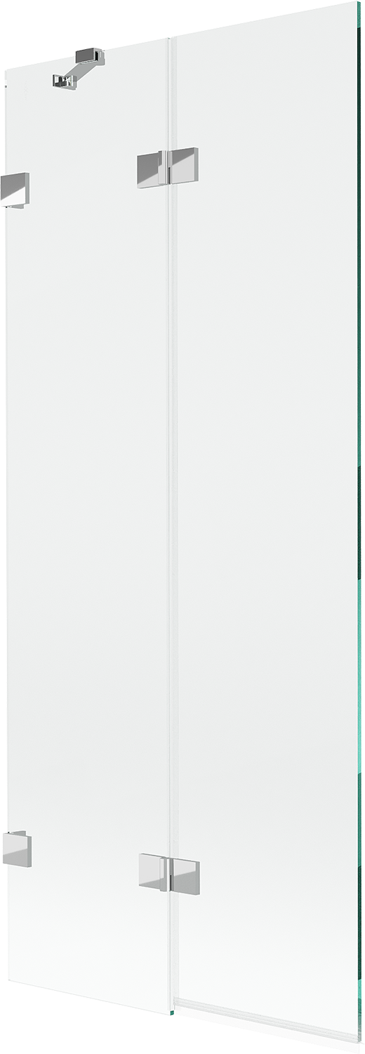 Écrã feito de duas portas com possibilidade de dobrar. Esta solução permite economizar mais espaço na casa de banho e permite o uso livre do espaço restante quando não estamos a usar a área de banho.
