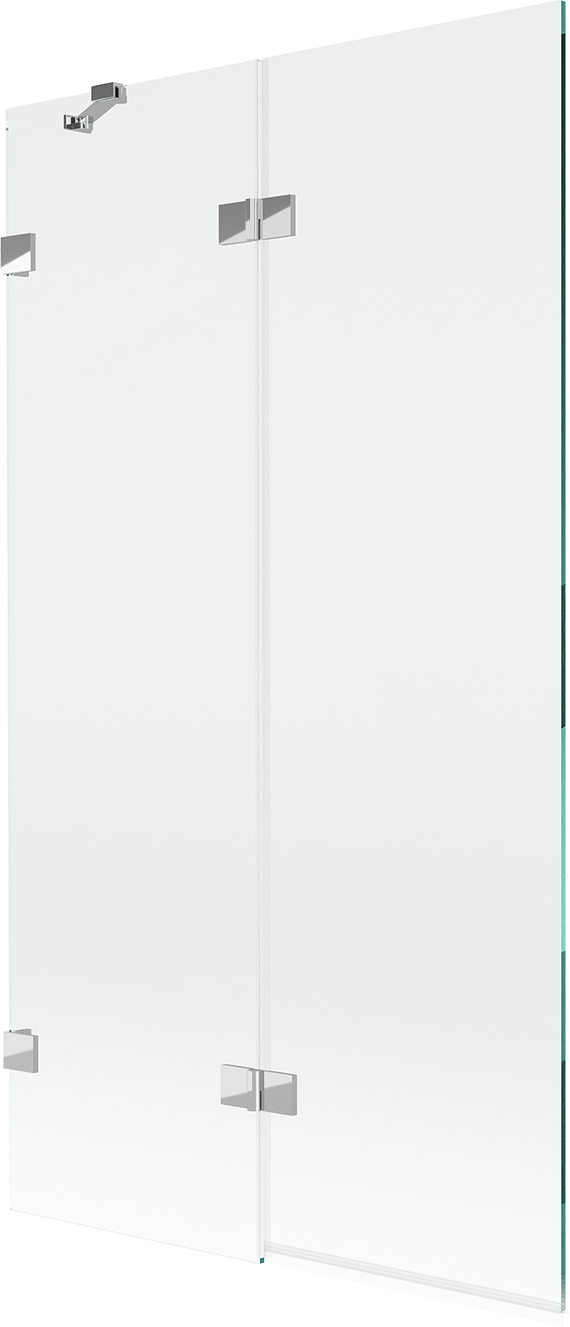 Écrã feito de duas portas com possibilidade de dobrar. Esta solução permite economizar mais espaço na casa de banho e permite o uso livre do espaço restante quando não estamos a usar a área de banho.