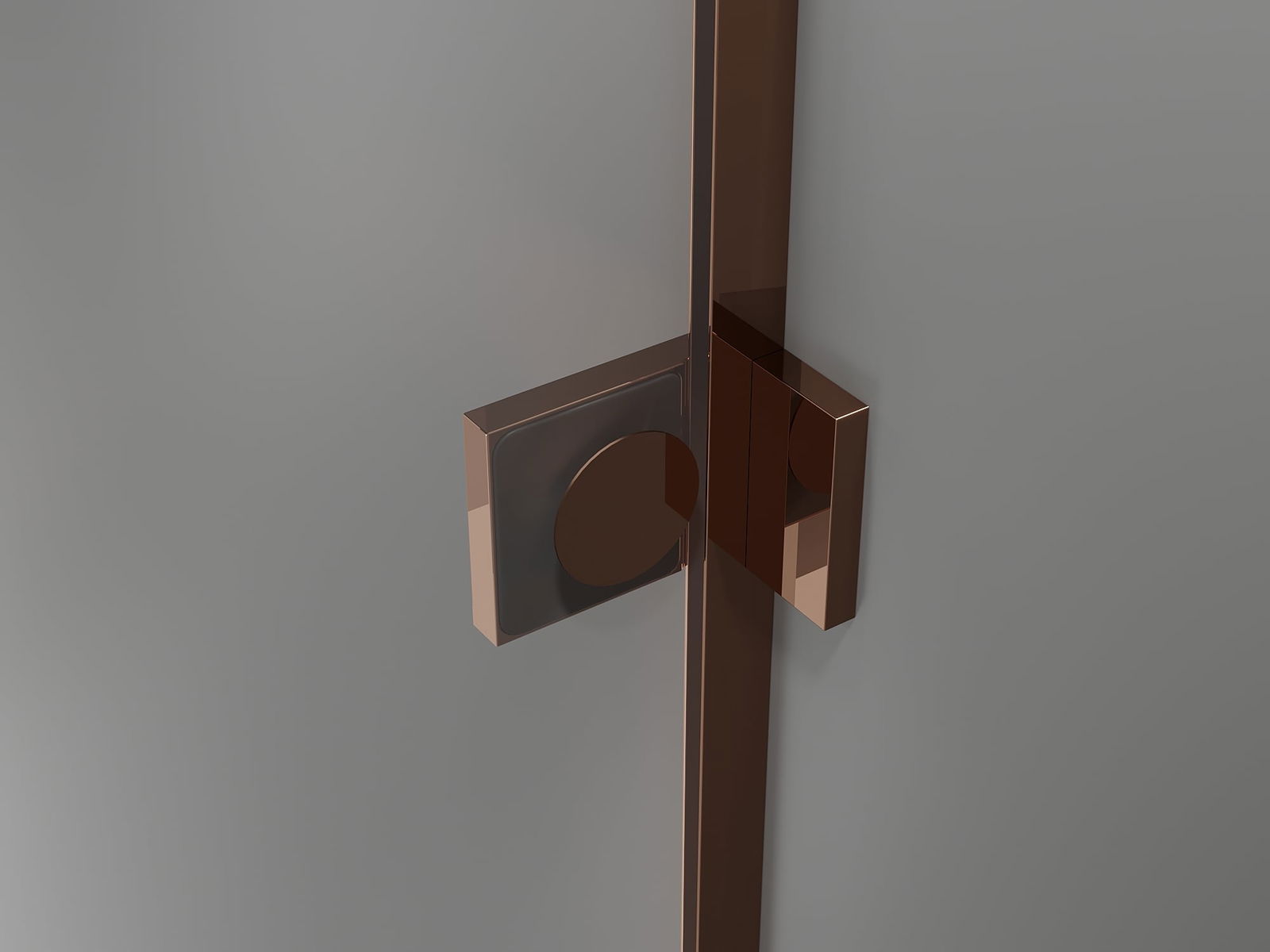 Grampas e dobradiças de latão alinhadas com o vidro