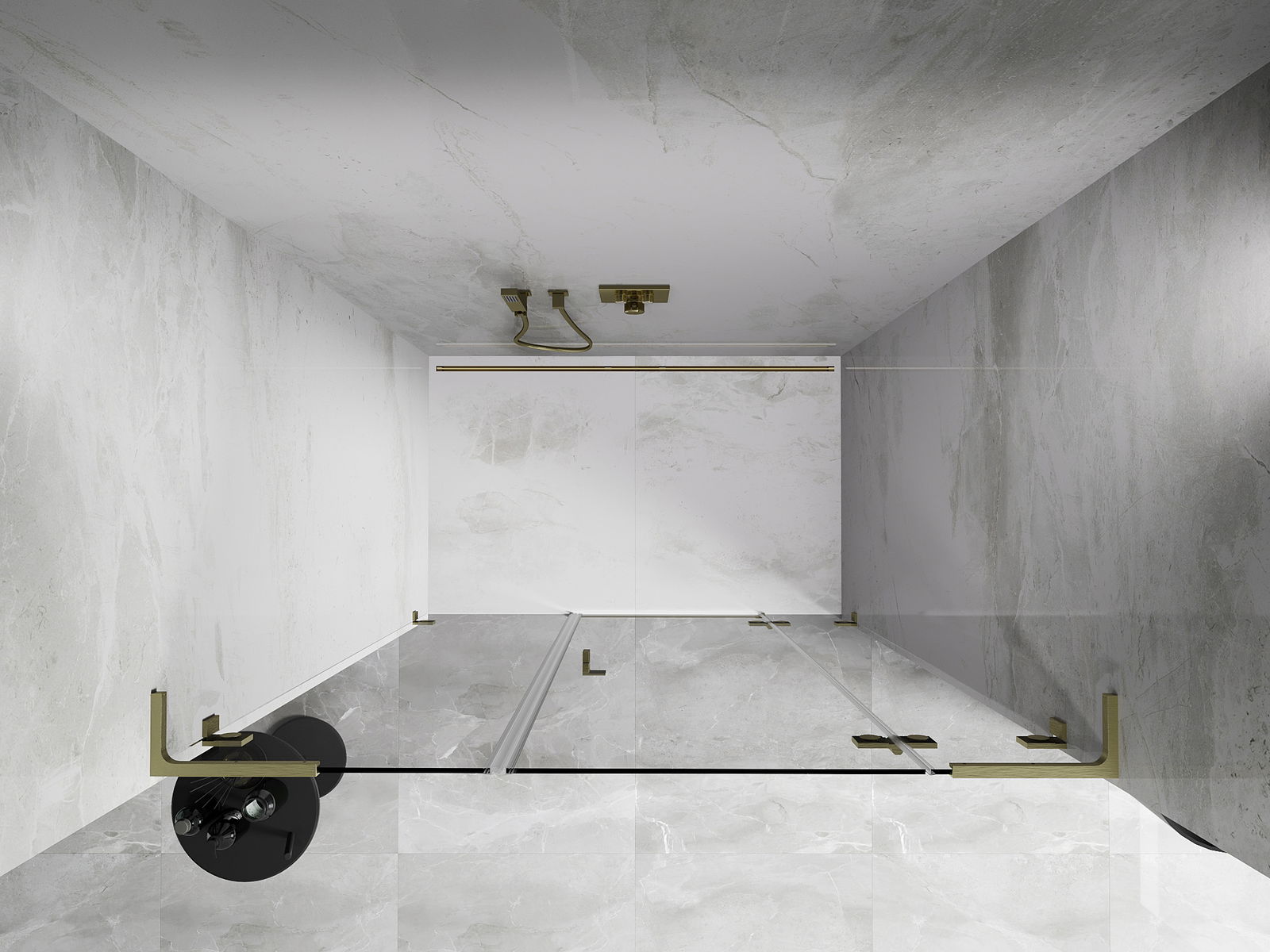 Mexen Lunar L porta de duche com dobradiça direita 135 cm, transparente, dourada escovada - 834SL-135-050-55-00-P