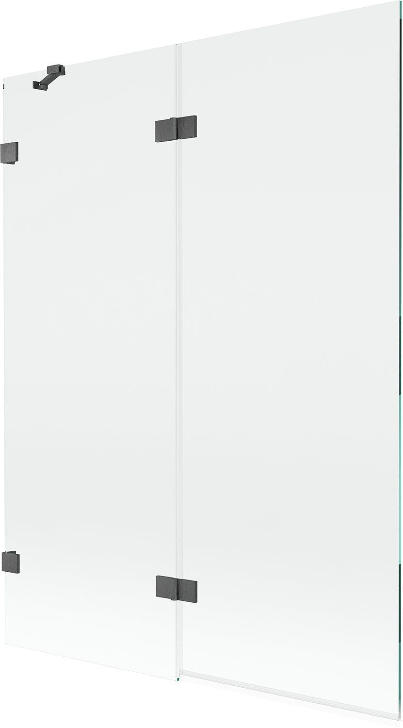 Écrã feito de duas portas com possibilidade de dobrar. Esta solução permite economizar mais espaço na casa de banho e permite o uso livre do espaço restante quando não estamos a usar a área de banho.