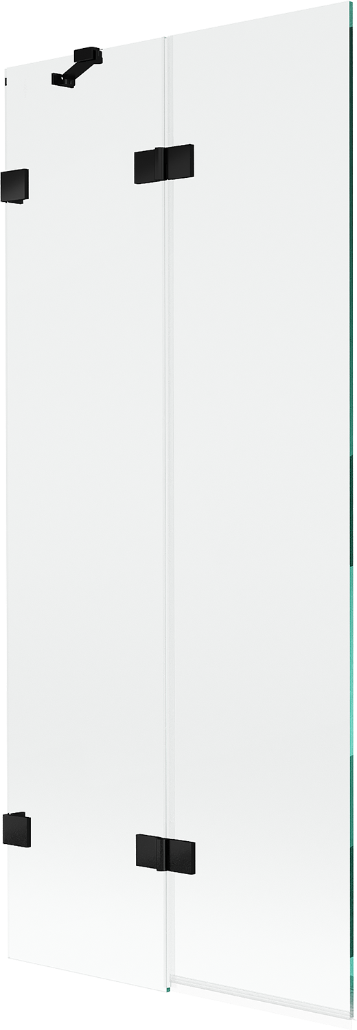 Écrã feito de duas portas com possibilidade de dobrar. Esta solução permite economizar mais espaço na casa de banho e permite o uso livre do espaço restante quando não estamos a usar a área de banho.