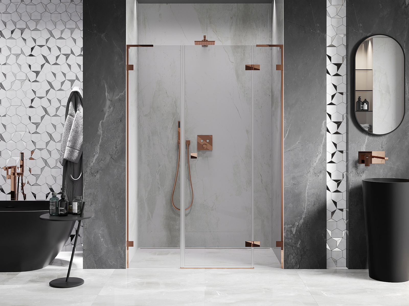 Mexen Lunar L portas de chuveiro de batente direitas 125 cm, transparente, ouro rosa - 834SL-125-050-60-00-P