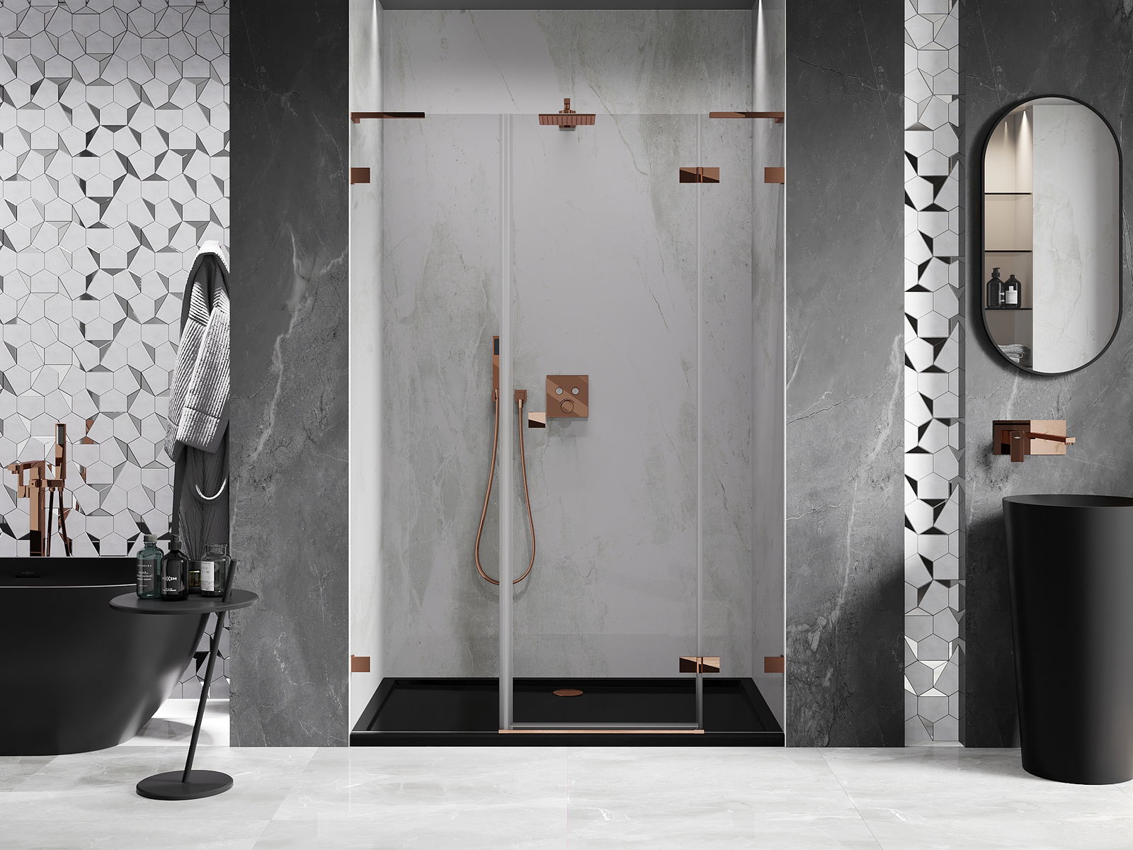 Mexen Lunar L porta de duche de batente direita 130 cm, transparente, ouro rosa - 834SL-130-050-60-00-P