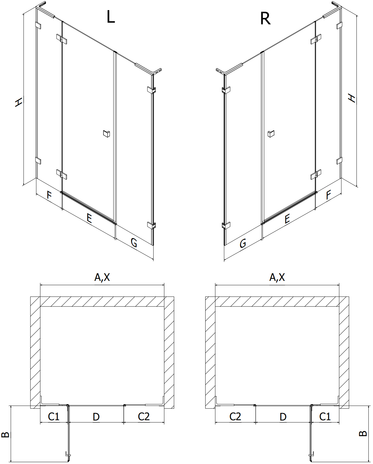 As portas de abrir permitem a máxima liberdade durante a utilização. Possuem dobradiças sólidas feitas de material durável, que não apresentam dificuldade na manutenção da limpeza e permitem fácil acesso ao interior da cabine.