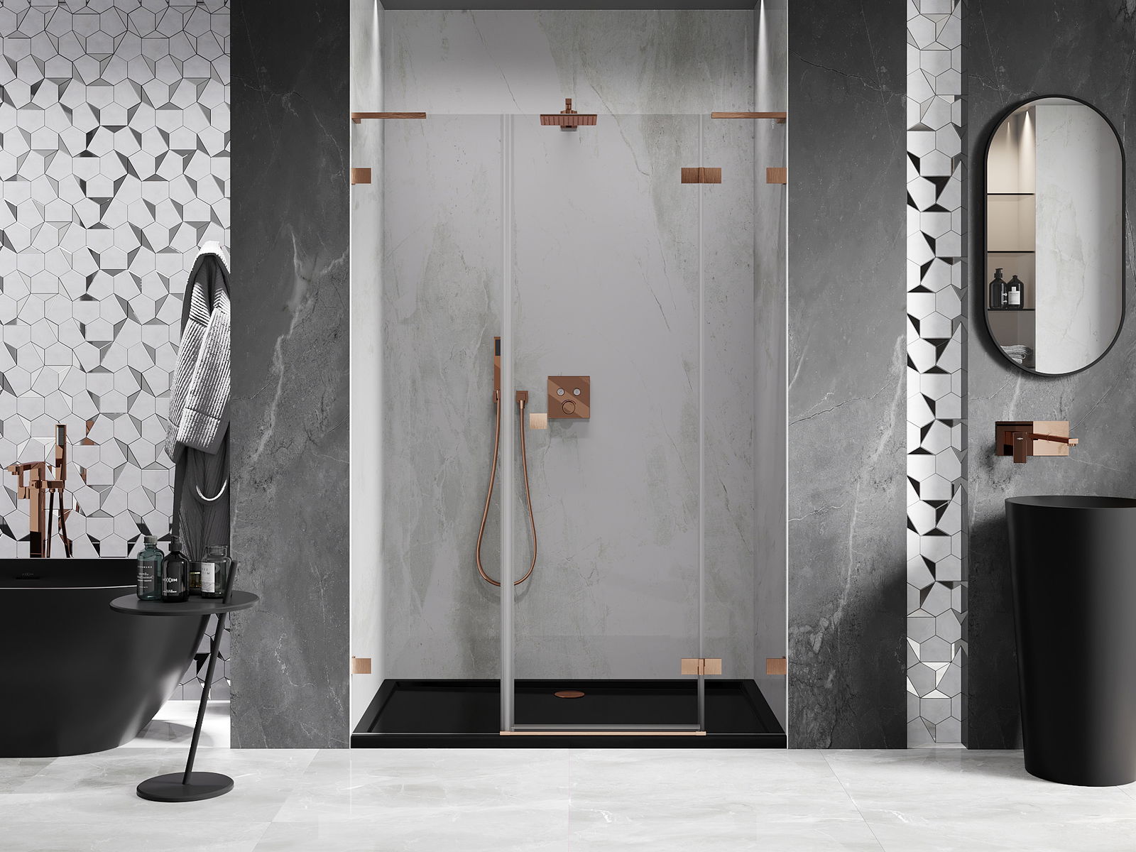 Mexen Lunar L porta de duche de batente direita 130 cm, transparente, cobre escovado - 834SL-130-050-65-00-P