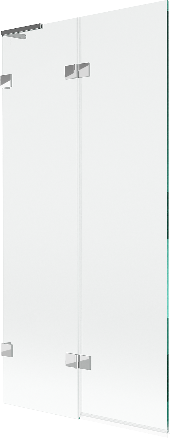 Écrã feito de duas portas com possibilidade de dobrar. Esta solução permite economizar mais espaço na casa de banho e permite o uso livre do espaço restante quando não estamos a usar a área de banho.