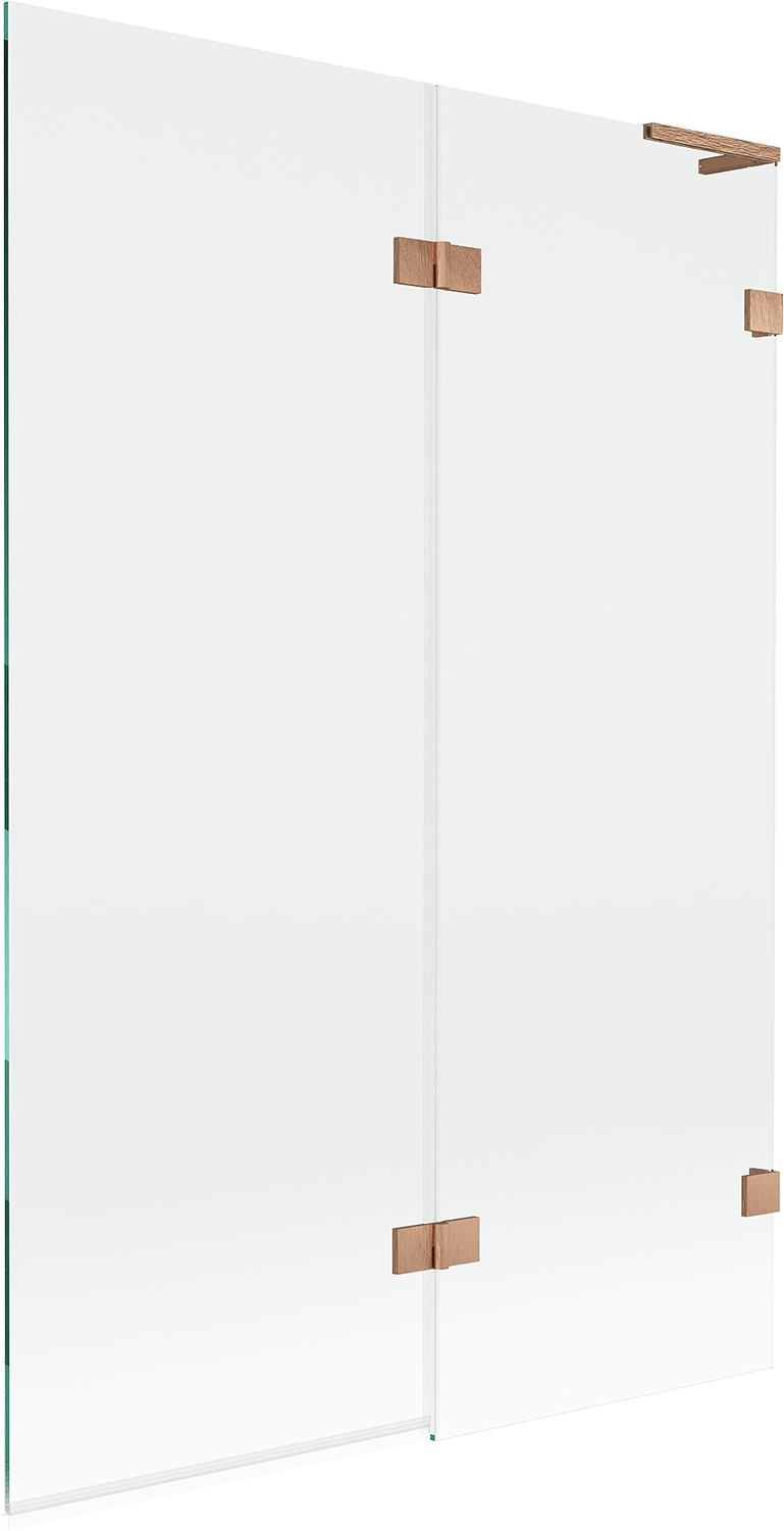 Écrã feito de duas portas com possibilidade de dobrar. Esta solução permite economizar mais espaço na casa de banho e permite o uso livre do espaço restante quando não estamos a usar a área de banho.