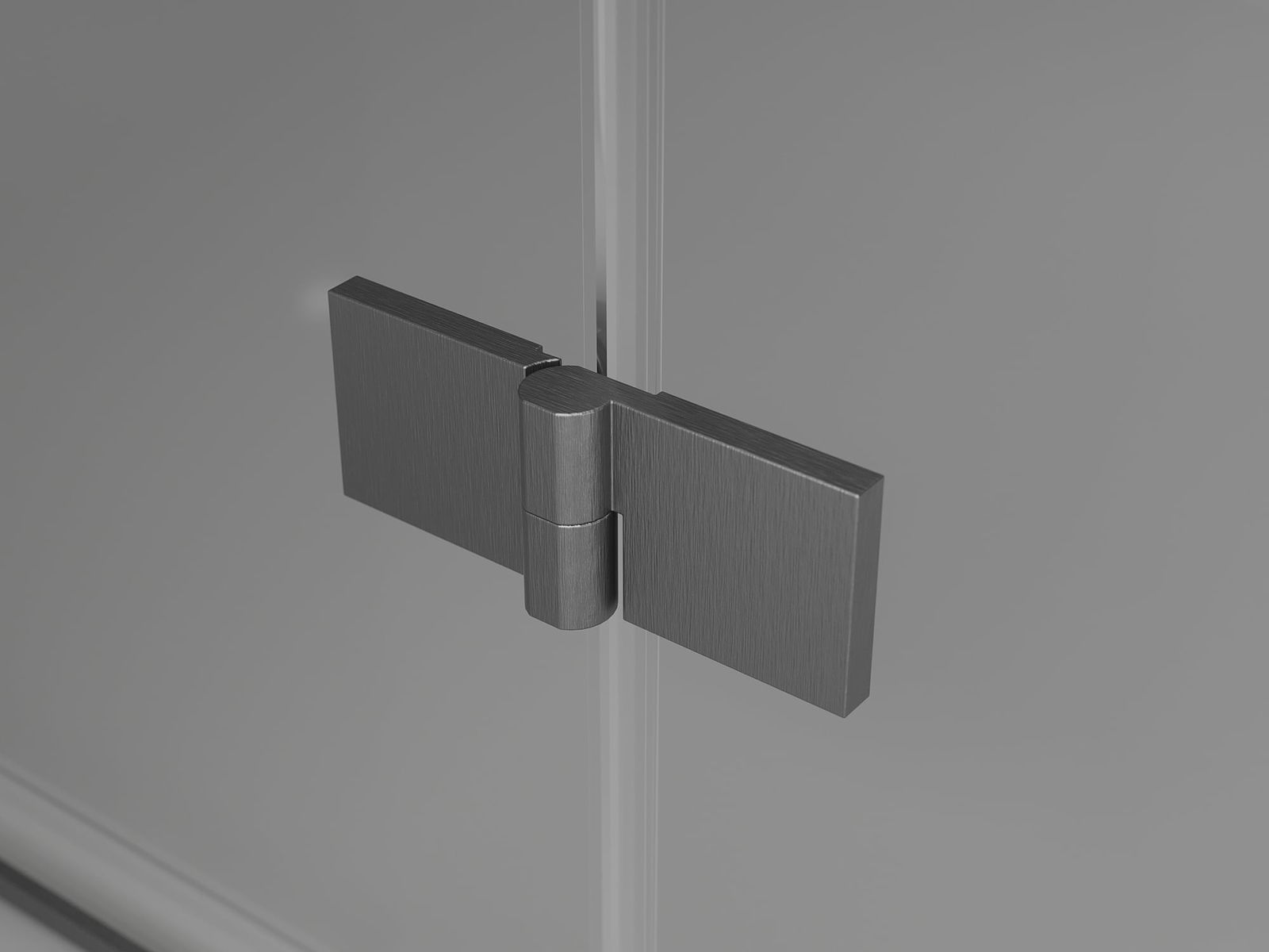 Grampas e dobradiças em latão embutidas no vidro