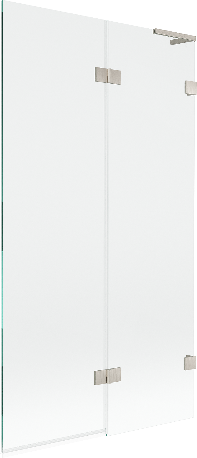 Écrã feito de duas portas com possibilidade de dobrar. Esta solução permite economizar mais espaço na casa de banho e permite o uso livre do espaço restante quando não estamos a usar a área de banho.