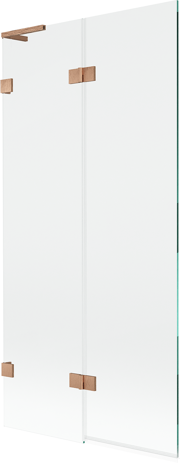 Écrã feito de duas portas com possibilidade de dobrar. Esta solução permite economizar mais espaço na casa de banho e permite o uso livre do espaço restante quando não estamos a usar a área de banho.