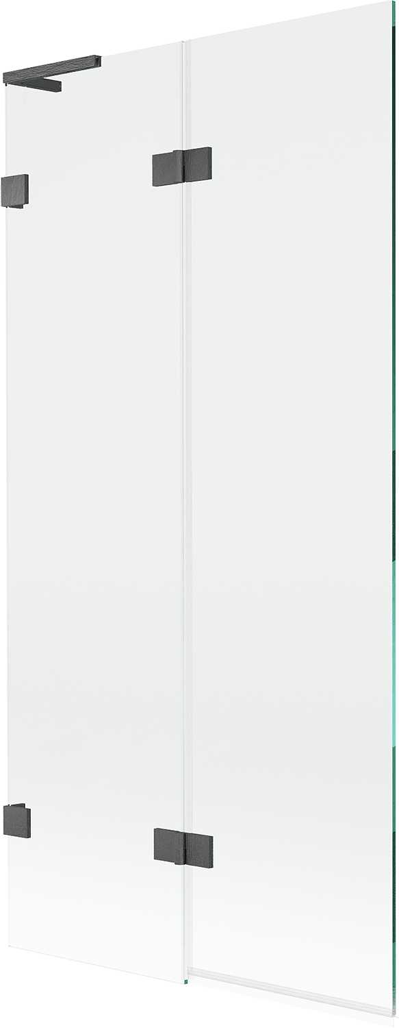Écrã feito de duas portas com possibilidade de dobrar. Esta solução permite economizar mais espaço na casa de banho e permite o uso livre do espaço restante quando não estamos a usar a área de banho.