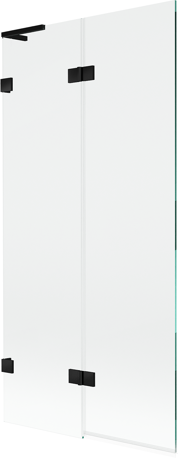Écrã feito de duas portas com possibilidade de dobrar. Esta solução permite economizar mais espaço na casa de banho e permite o uso livre do espaço restante quando não estamos a usar a área de banho.