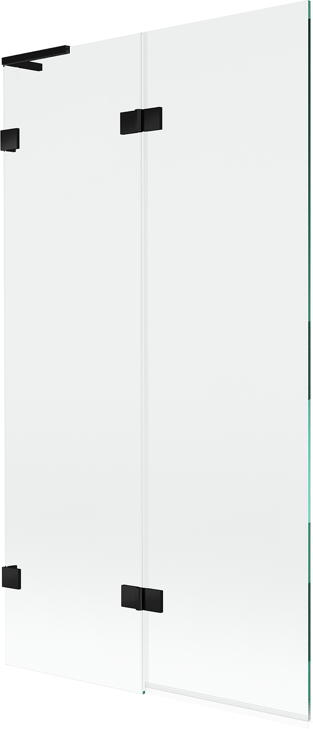 Écrã feito de duas portas com possibilidade de dobrar. Esta solução permite economizar mais espaço na casa de banho e permite o uso livre do espaço restante quando não estamos a usar a área de banho.