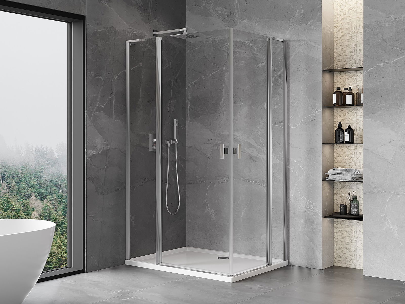 A pega prática e confortável foi feita de metal durável e resistente. A forma moderna combinada com o acabamento ajustado à cor dos perfis confere a todo o conjunto uma aparência moderna e estilosa, realçando a estética de qualquer casa de banho.