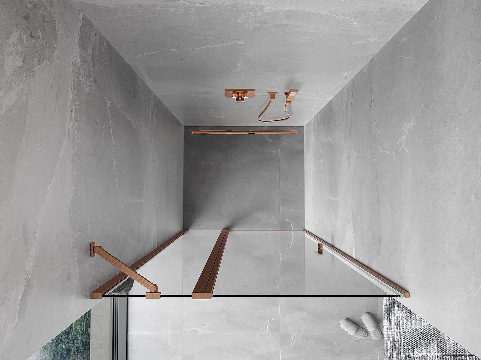 Mexen Mist porta de duche pivotante 105 cm, transparente, cobre escovado - 8A4-105-000-65-00