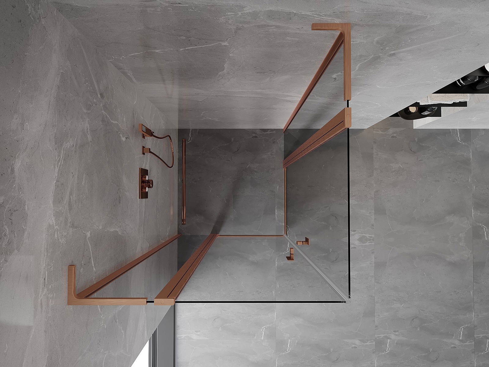 Mexen Mist L Duo cabine de duche com porta de abrir 110 x 110 cm, transparente, cobre escovado - 8A4L-110-110-65-00
