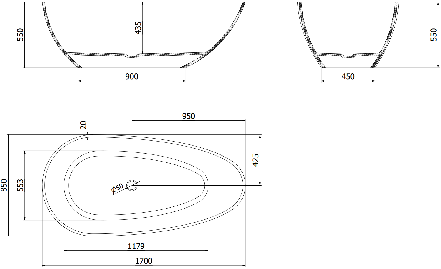 É um material moderno que combina uma aparência elegante com alta durabilidade. É resistente a danos mecânicos, fácil de limpar e agradável ao toque. A forma transparente e a borda fina da banheira conferem-lhe leveza e um caráter único, criando um destaque impressionante na decoração da casa de banho.