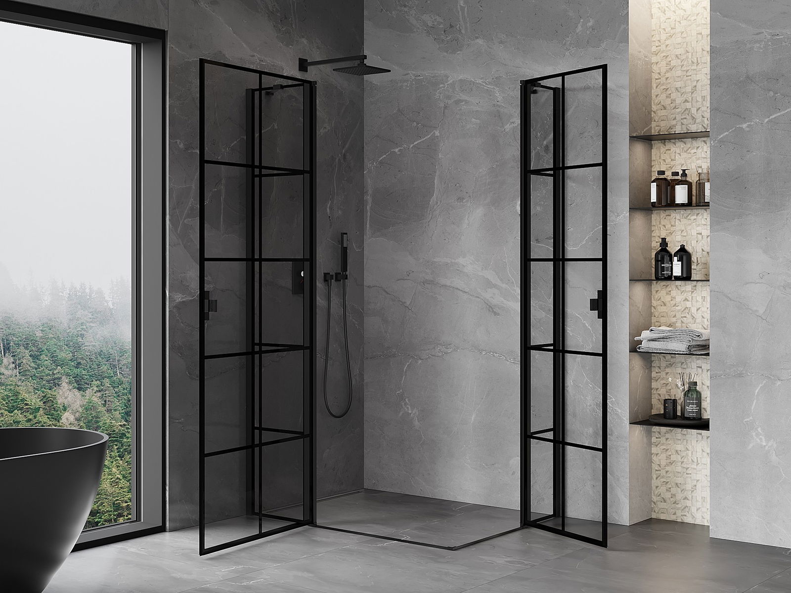 Mexen Mist Duo cabine de duche com porta de correr 115 x 85 cm, grade preta, preto - 8A4-115L-085P-70-77