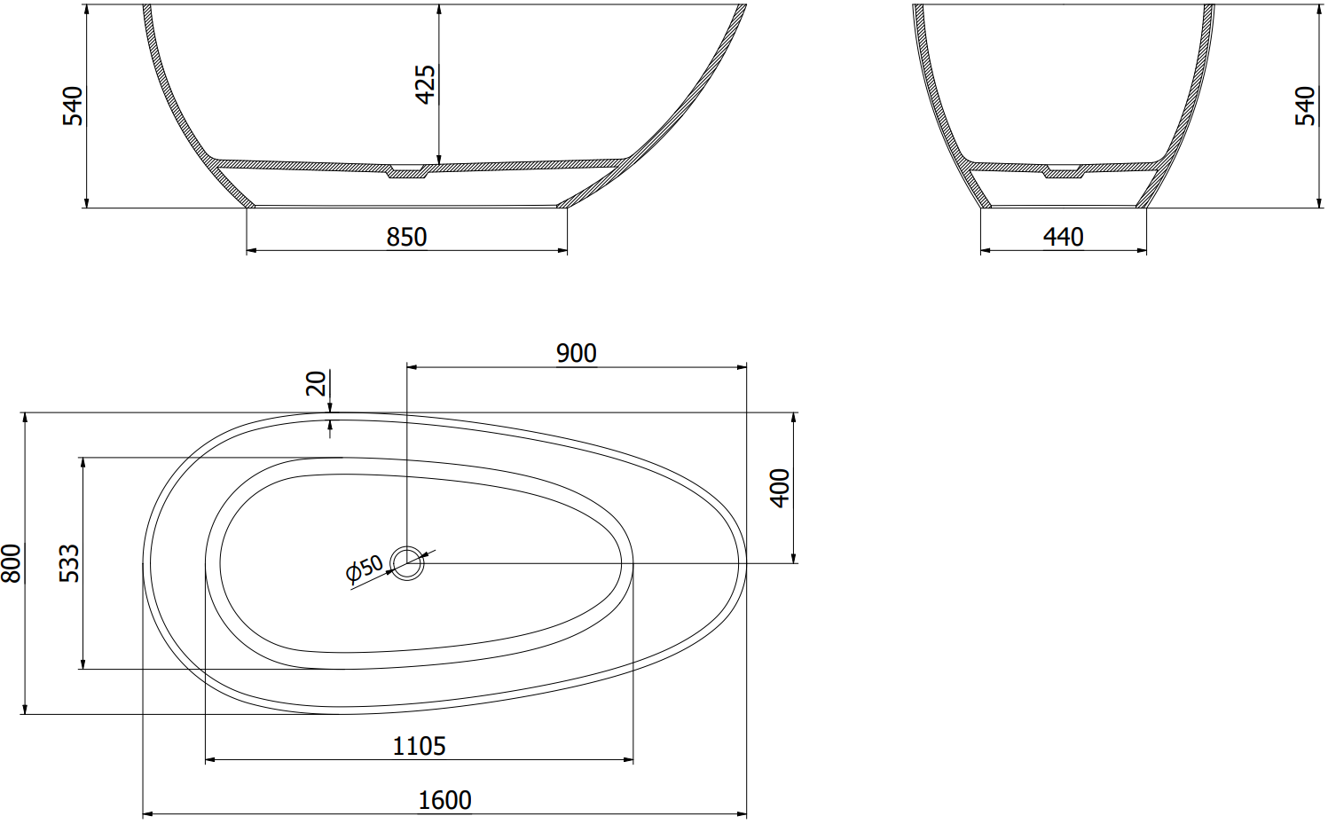 É um material moderno que combina uma aparência elegante com alta durabilidade. É resistente a danos mecânicos, fácil de limpar e agradável ao toque. A forma transparente e a borda fina da banheira conferem-lhe leveza e um caráter único, criando um destaque impressionante na decoração da casa de banho.