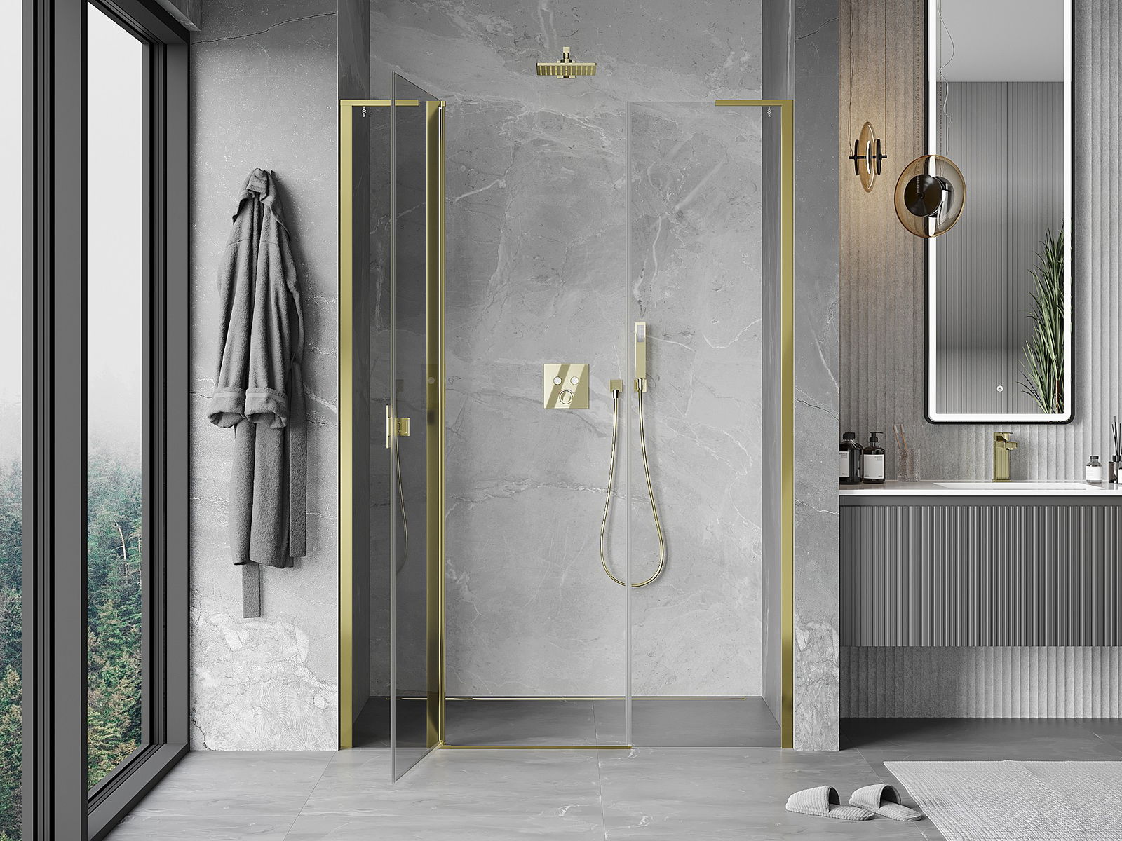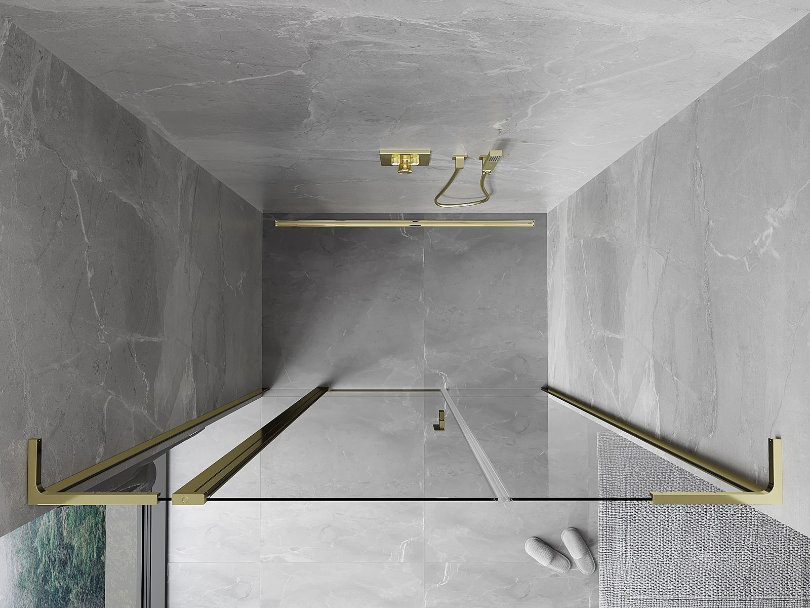 A pega prática e confortável foi feita de metal durável e resistente. A forma moderna combinada com o acabamento ajustado à cor dos perfis confere a todo o conjunto uma aparência moderna e estilosa, realçando a estética de qualquer casa de banho.