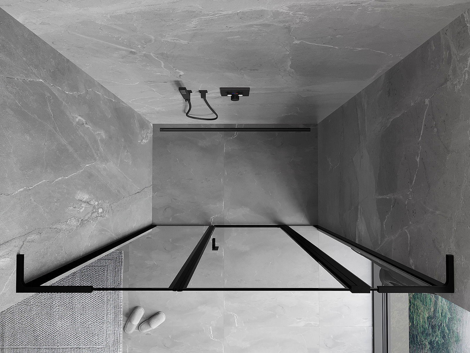 Mexen Mist L porta de duche com dobradiça à direita 160 cm, moldura preta, preta - 8A4L-160-001-70-70-P