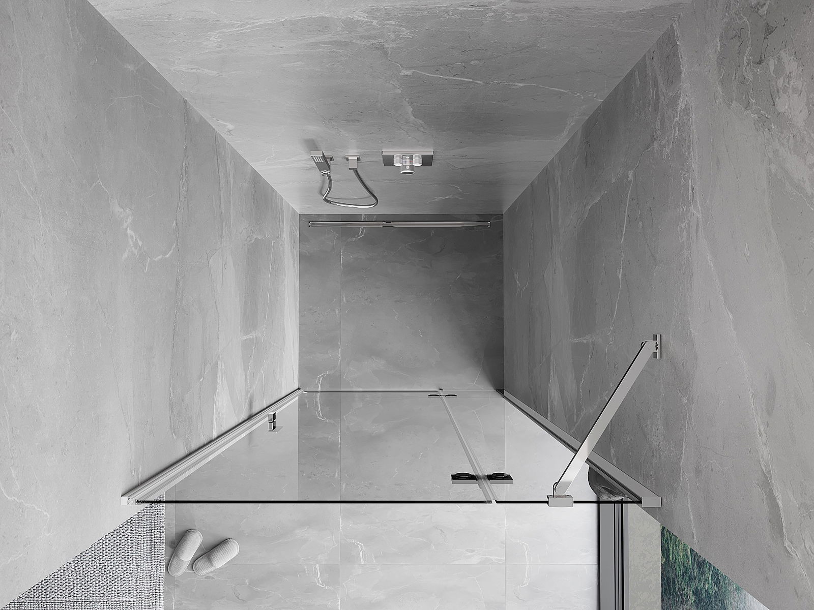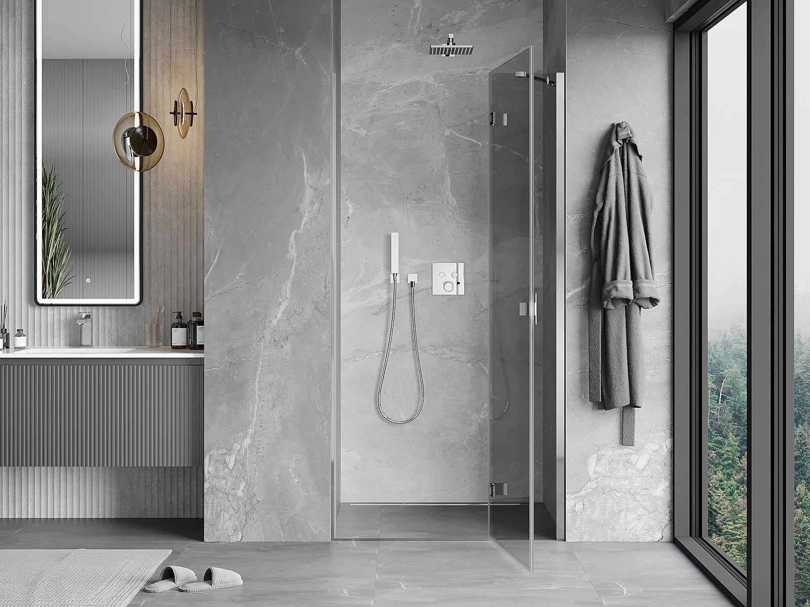 A pega prática e confortável foi feita de metal durável e resistente. A forma moderna combinada com o acabamento ajustado à cor dos perfis confere a todo o conjunto uma aparência moderna e estilosa, realçando a estética de qualquer casa de banho.