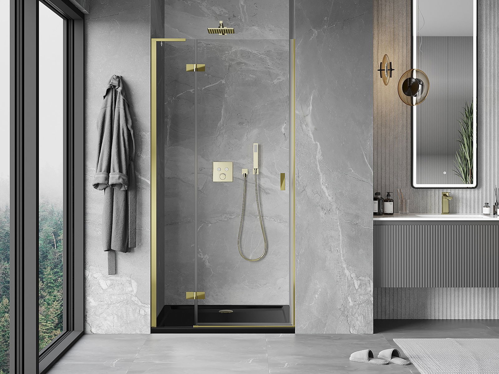 A pega prática e confortável foi feita de metal durável e resistente. A forma moderna combinada com o acabamento ajustado à cor dos perfis confere a todo o conjunto uma aparência moderna e estilosa, realçando a estética de qualquer casa de banho.