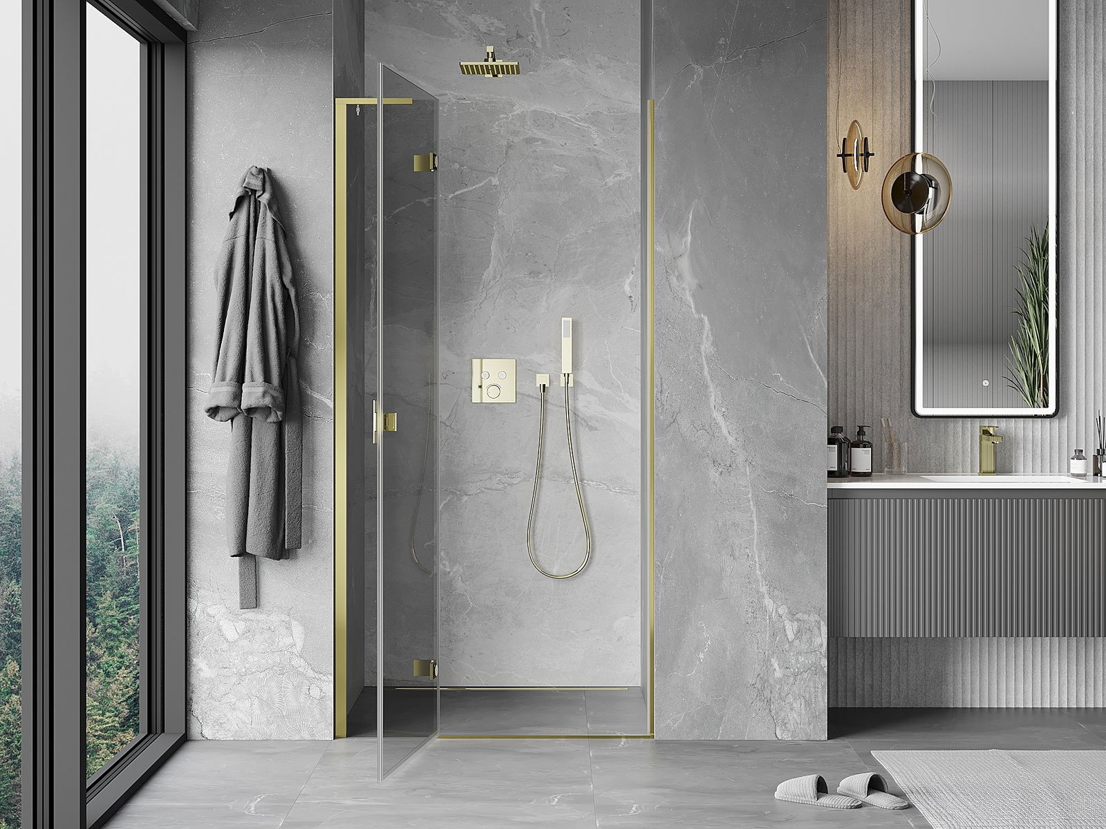 A pega prática e confortável foi feita de metal durável e resistente. A forma moderna combinada com o acabamento ajustado à cor dos perfis confere a todo o conjunto uma aparência moderna e estilosa, realçando a estética de qualquer casa de banho.