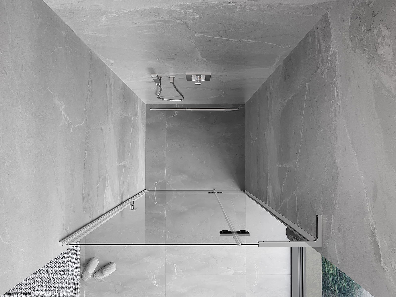 A pega prática e confortável foi feita de metal durável e resistente. A forma moderna combinada com o acabamento ajustado à cor dos perfis confere a todo o conjunto uma aparência moderna e estilosa, realçando a estética de qualquer casa de banho.