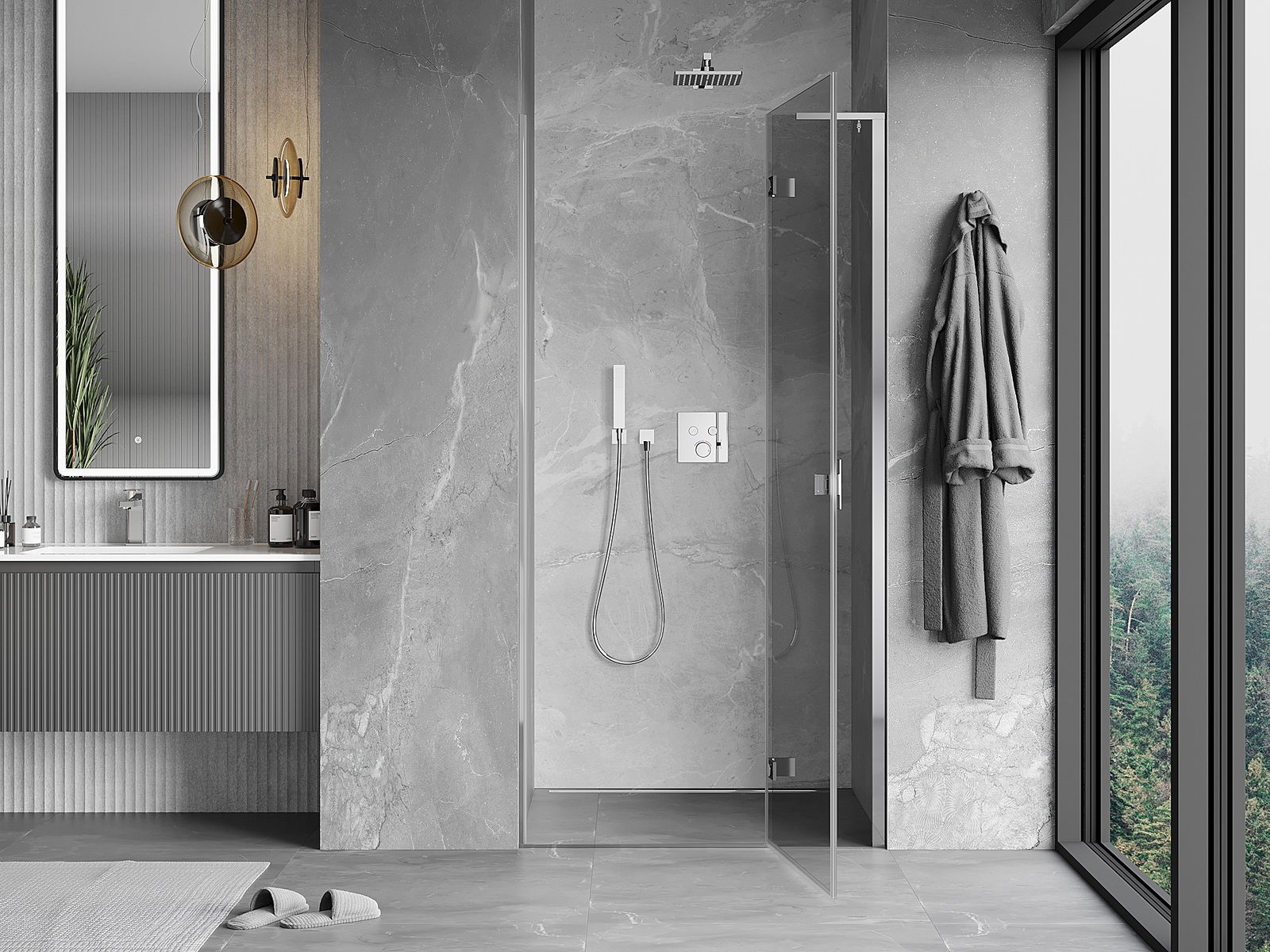 A pega prática e confortável foi feita de metal durável e resistente. A forma moderna combinada com o acabamento ajustado à cor dos perfis confere a todo o conjunto uma aparência moderna e estilosa, realçando a estética de qualquer casa de banho.