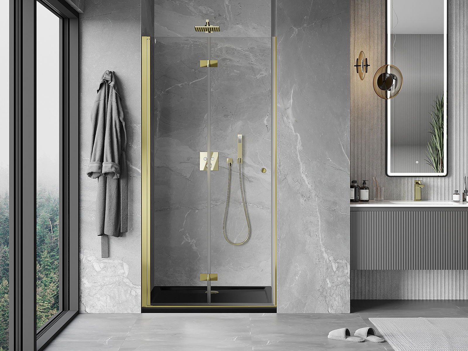 A pega prática e confortável foi feita de metal durável e resistente. A forma moderna combinada com o acabamento ajustado à cor dos perfis confere a todo o conjunto uma aparência moderna e estilosa, realçando a estética de qualquer casa de banho.