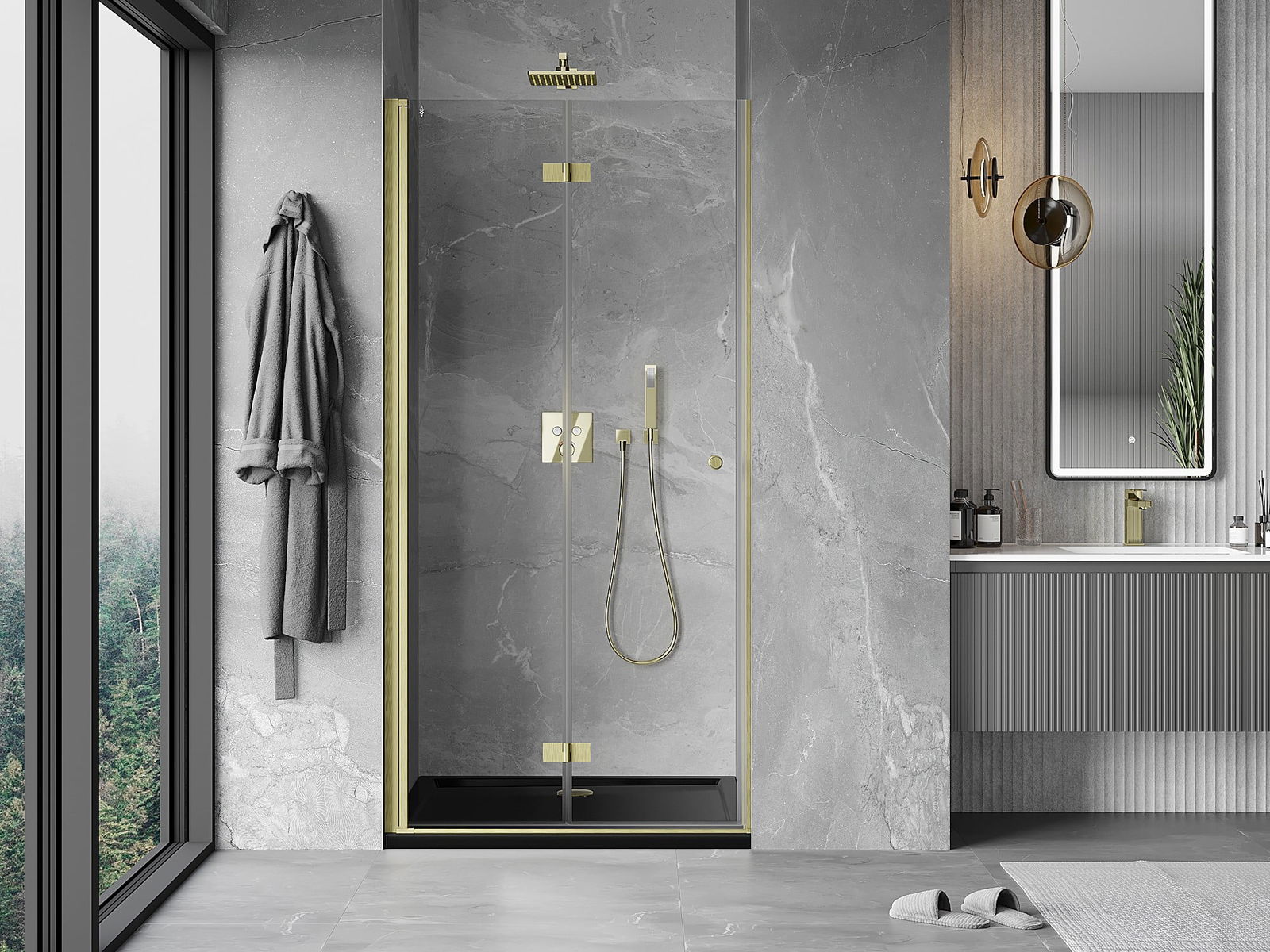 A pega prática e confortável foi feita de metal durável e resistente. A forma moderna combinada com o acabamento ajustado à cor dos perfis confere a todo o conjunto uma aparência moderna e estilosa, realçando a estética de qualquer casa de banho.