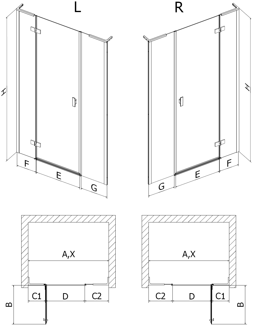 As portas de abrir permitem a máxima liberdade durante a utilização. Possuem dobradiças sólidas feitas de material durável, que não apresentam dificuldade na manutenção da limpeza e permitem fácil acesso ao interior da cabine.
