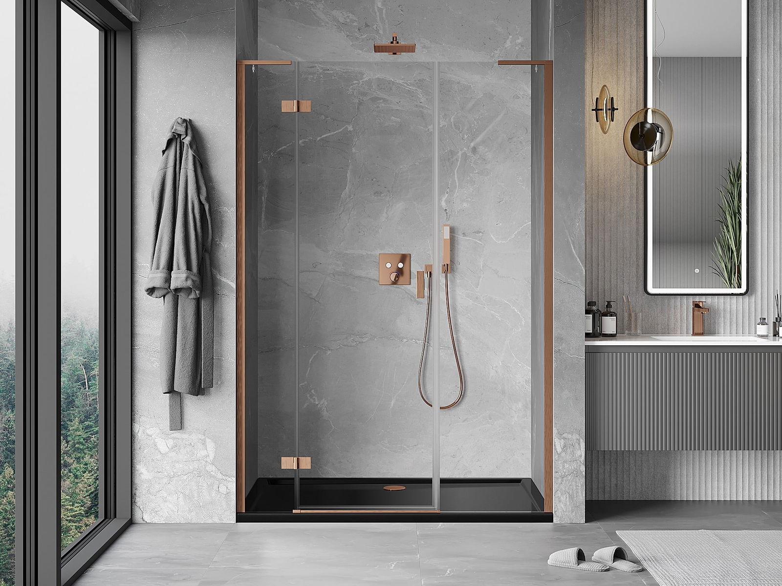 Mexen Mist-H L porta de chuveiro de abrir à esquerda 150 cm, transparente, cobre escovado - 8A5L-150-001-65-00-L