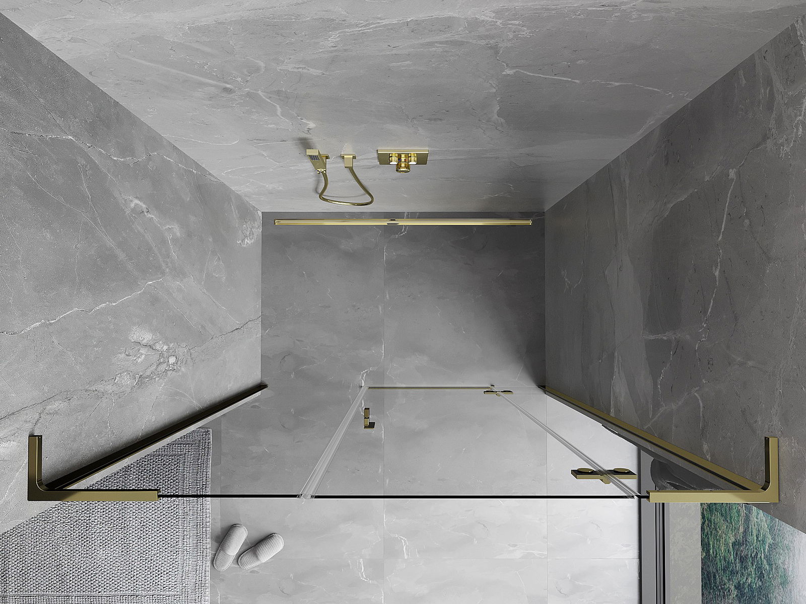 Mexen Mist-H L porta de duche com dobradiças à direita 140 cm, transparente, dourada - 8A5L-140-001-50-00-P