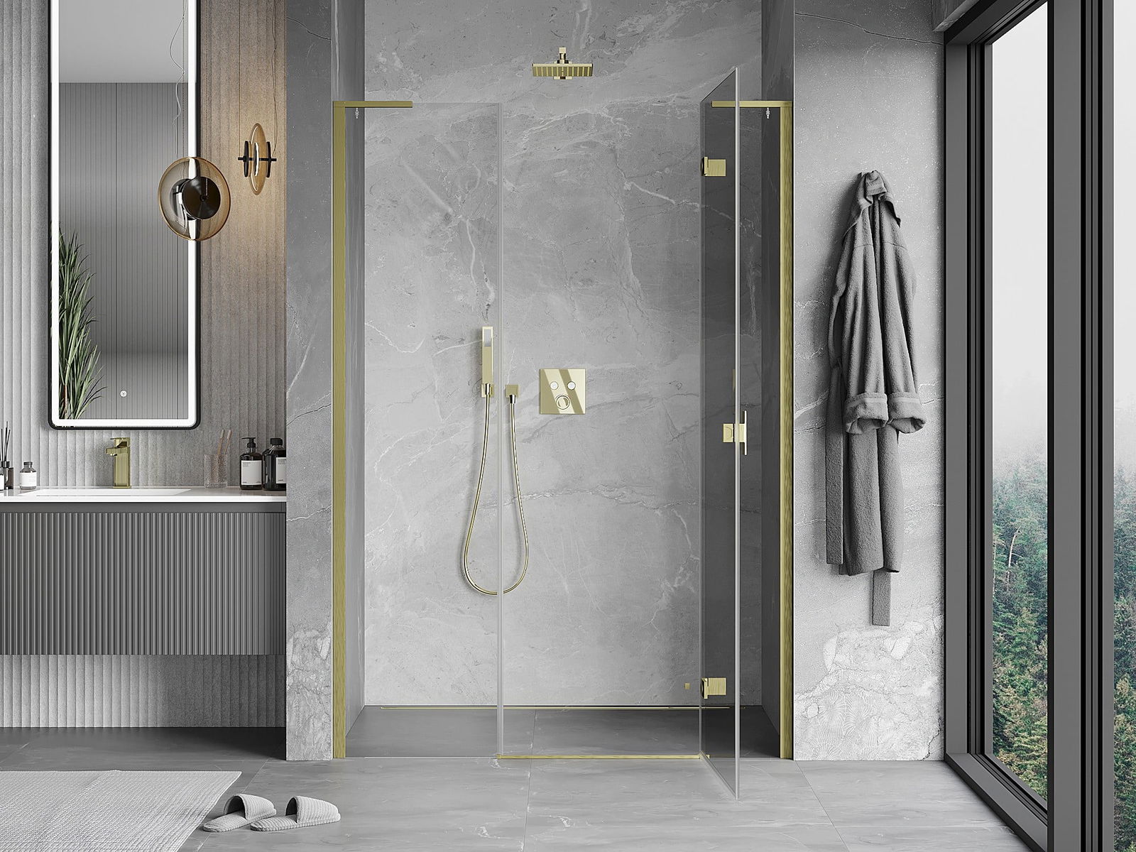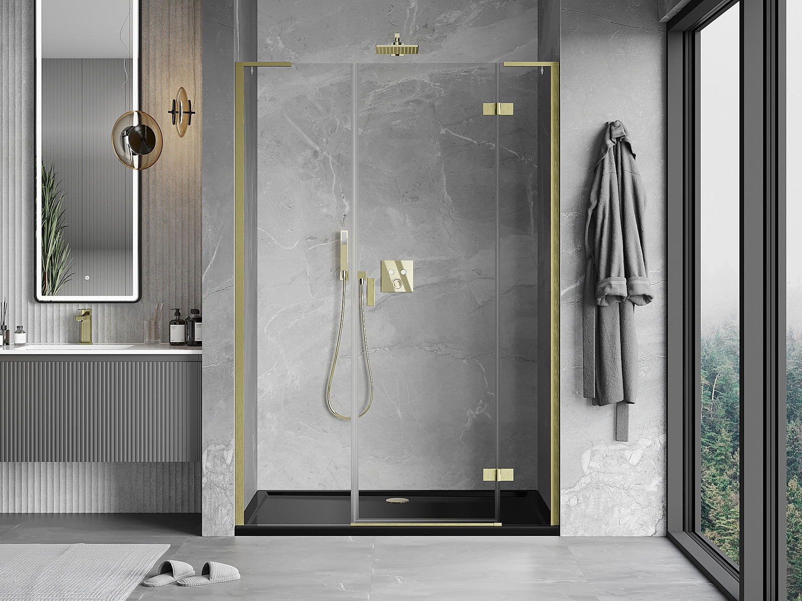 A pega prática e confortável foi feita de metal durável e resistente. A forma moderna combinada com o acabamento ajustado à cor dos perfis confere a todo o conjunto uma aparência moderna e estilosa, realçando a estética de qualquer casa de banho.