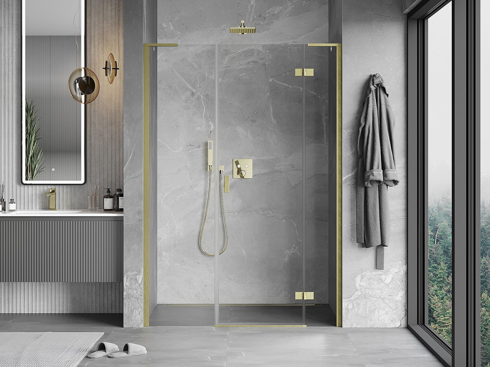 Mexen Mist-H L porta de duche de abrir à direita 120 cm, transparente, dourado escovado - 8A5L-120-001-55-00-P