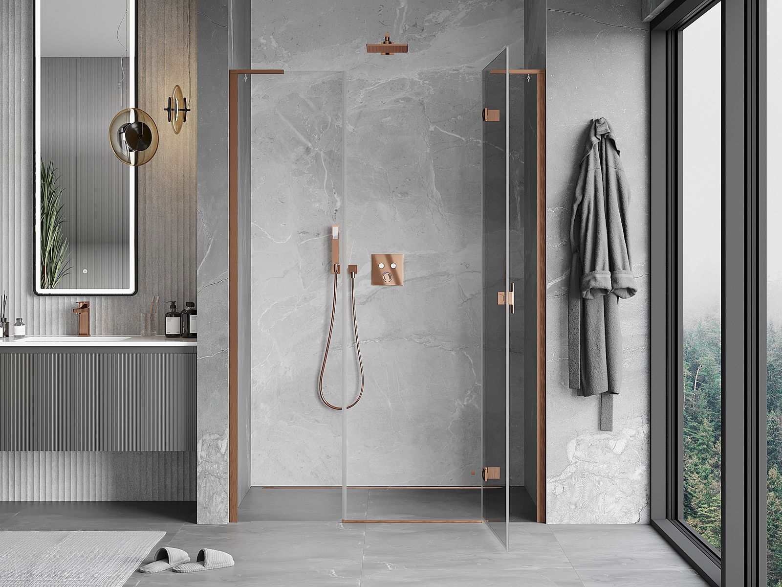Mexen Mist-H L portas de duche articuladas à direita 120 cm, transparente, cobre escovado - 8A5L-120-001-65-00-P