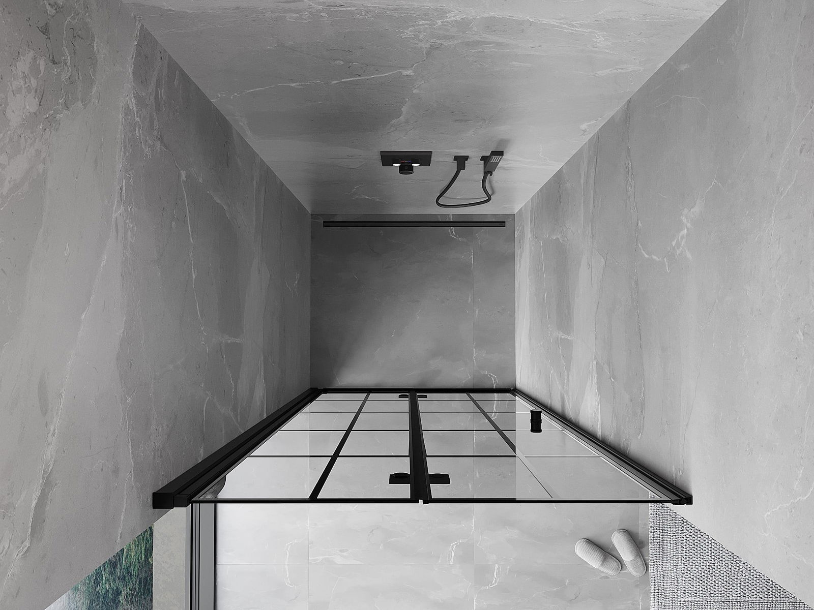 Mexen Mist-F porta de duche dobrável esquerda 110 cm, grade preta, preto - 8A6-110-000-70-77-L