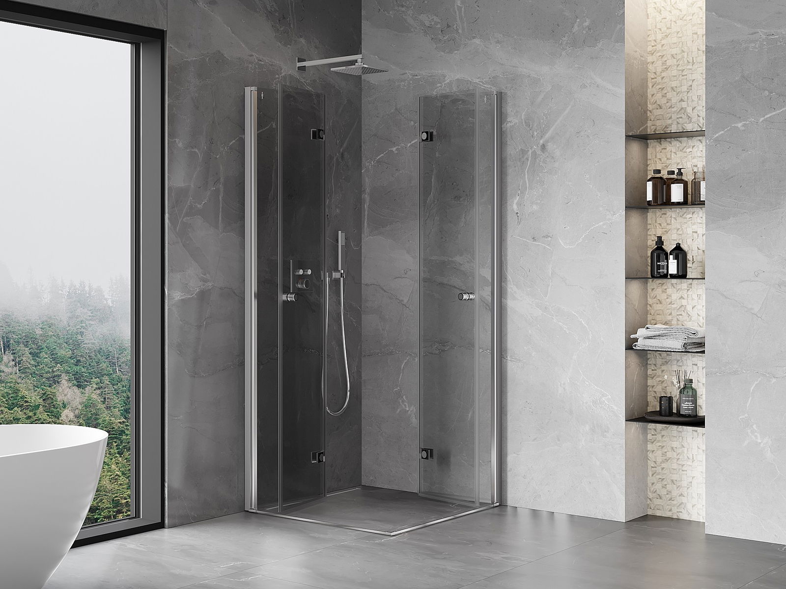 Graças à possibilidade de dobrar as portas, tanto para fora como para dentro, obtemos muito mais espaço quando não estamos a utilizar o duche. É uma solução ideal para casas de banho pequenas.