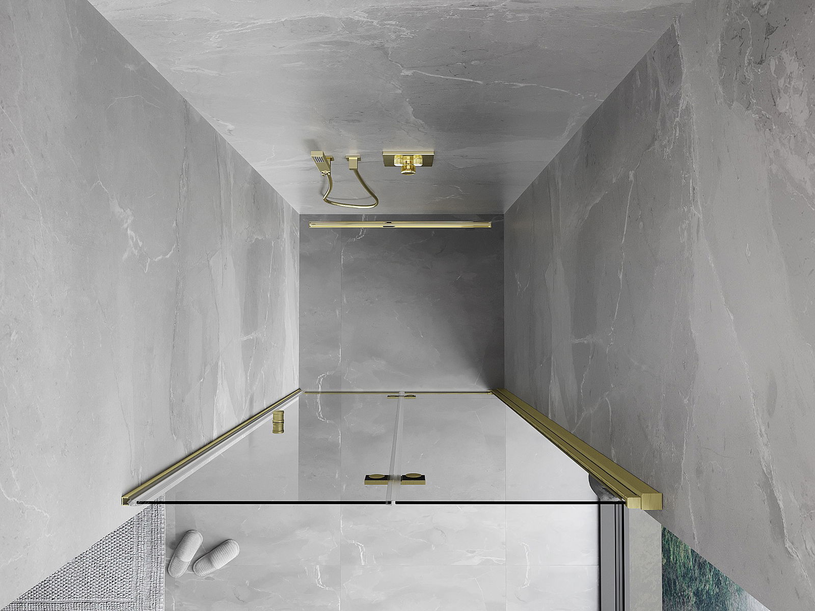 Mexen Mist-F portas de chuveiro dobráveis direitas 85 cm, transparentes, dourado escovado - 8A6-085-000-55-00-P