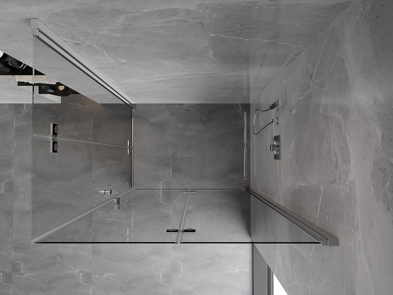 A pega prática e confortável foi feita de metal durável e resistente. A forma moderna combinada com o acabamento ajustado à cor dos perfis confere a todo o conjunto uma aparência moderna e estilosa, realçando a estética de qualquer casa de banho.