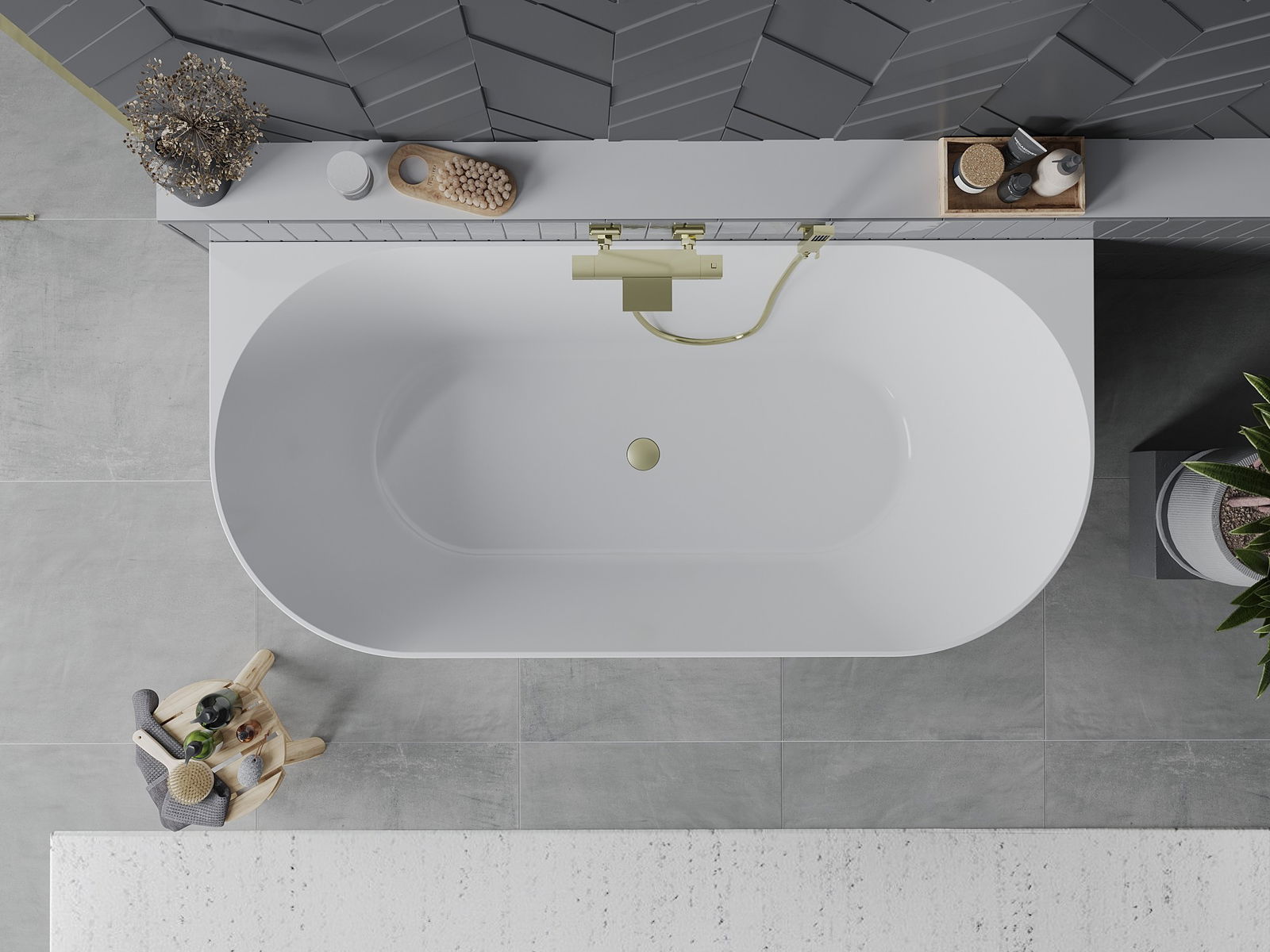 Inclui-se um sifão com uma tampa klik-klak, o que permite abrir e fechar rapidamente a válvula de drenagem na banheira. Esqueça-se de procurar a tampa antes do banho! Basta um clique para parar ou drenar a água.
