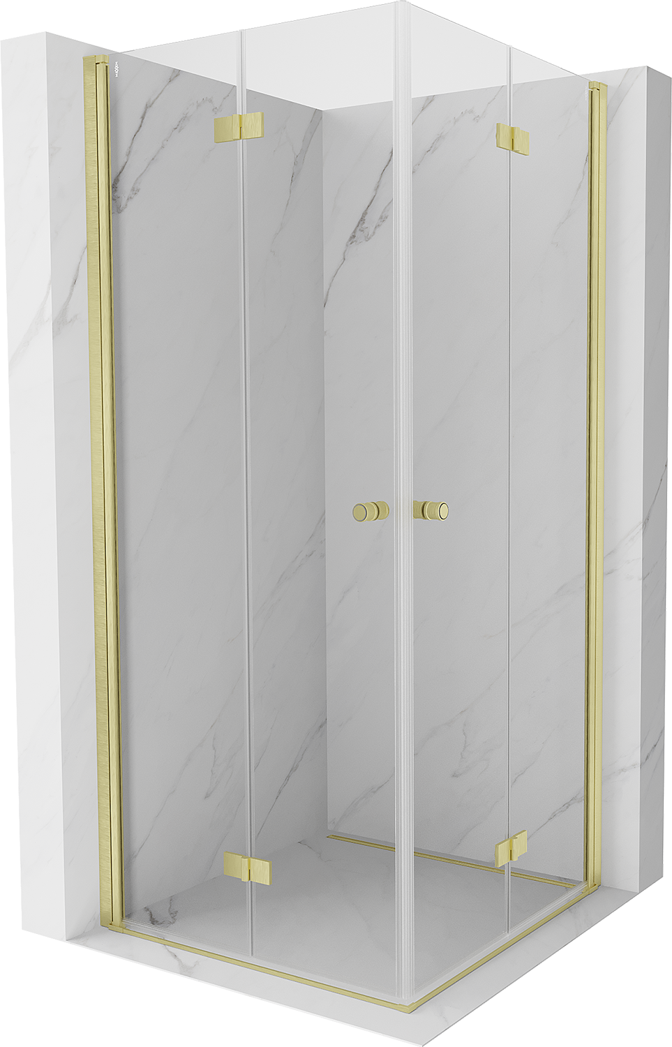 Mexen Mist-F Duo cabine de duche dobrável 100 x 100 cm, transparente, dourada escovada - 8A6-100L-100P-55-00