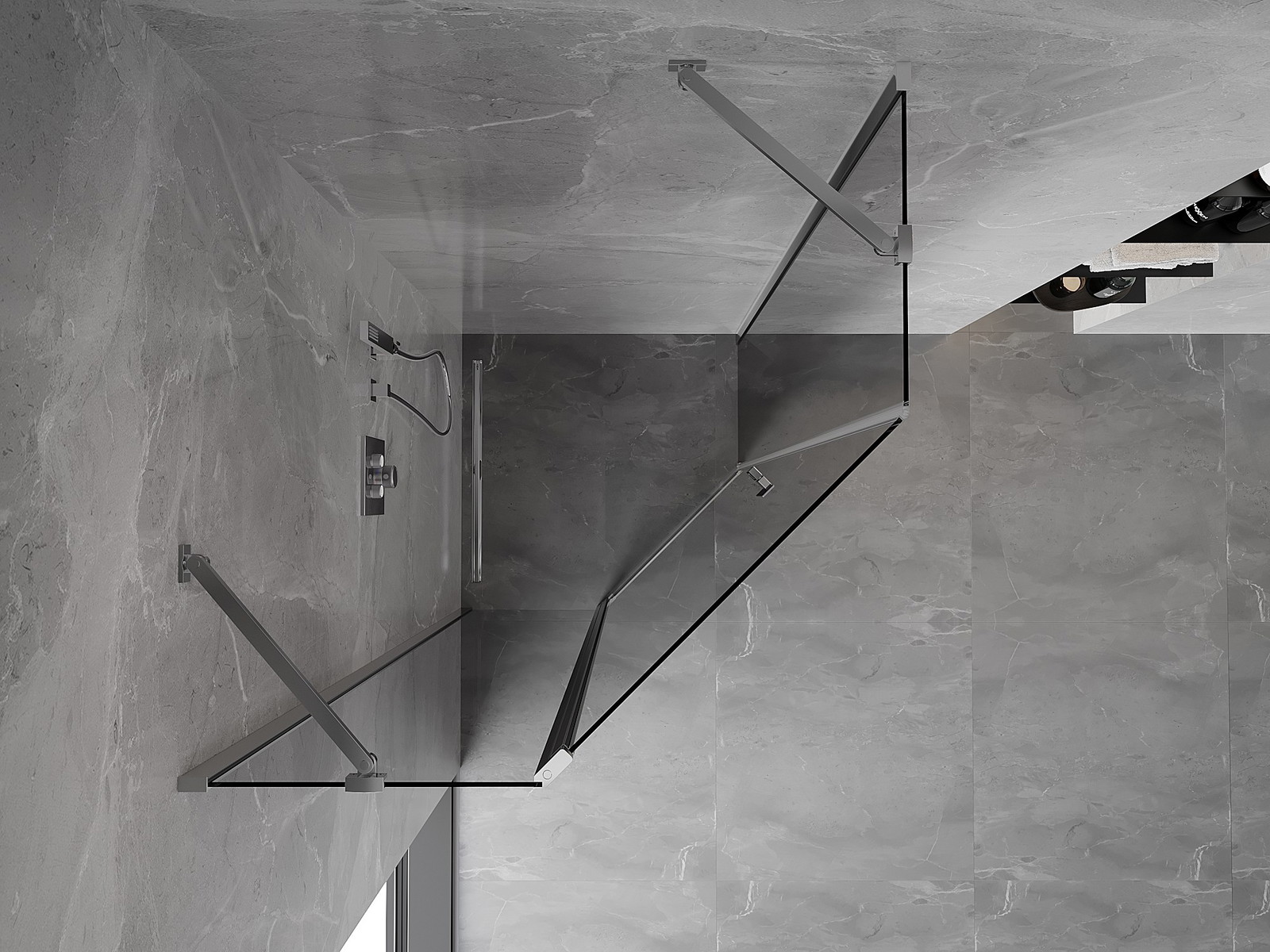 A pega prática e confortável foi feita de metal durável e resistente. A forma moderna combinada com o acabamento ajustado à cor dos perfis confere a todo o conjunto uma aparência moderna e estilosa, realçando a estética de qualquer casa de banho.
